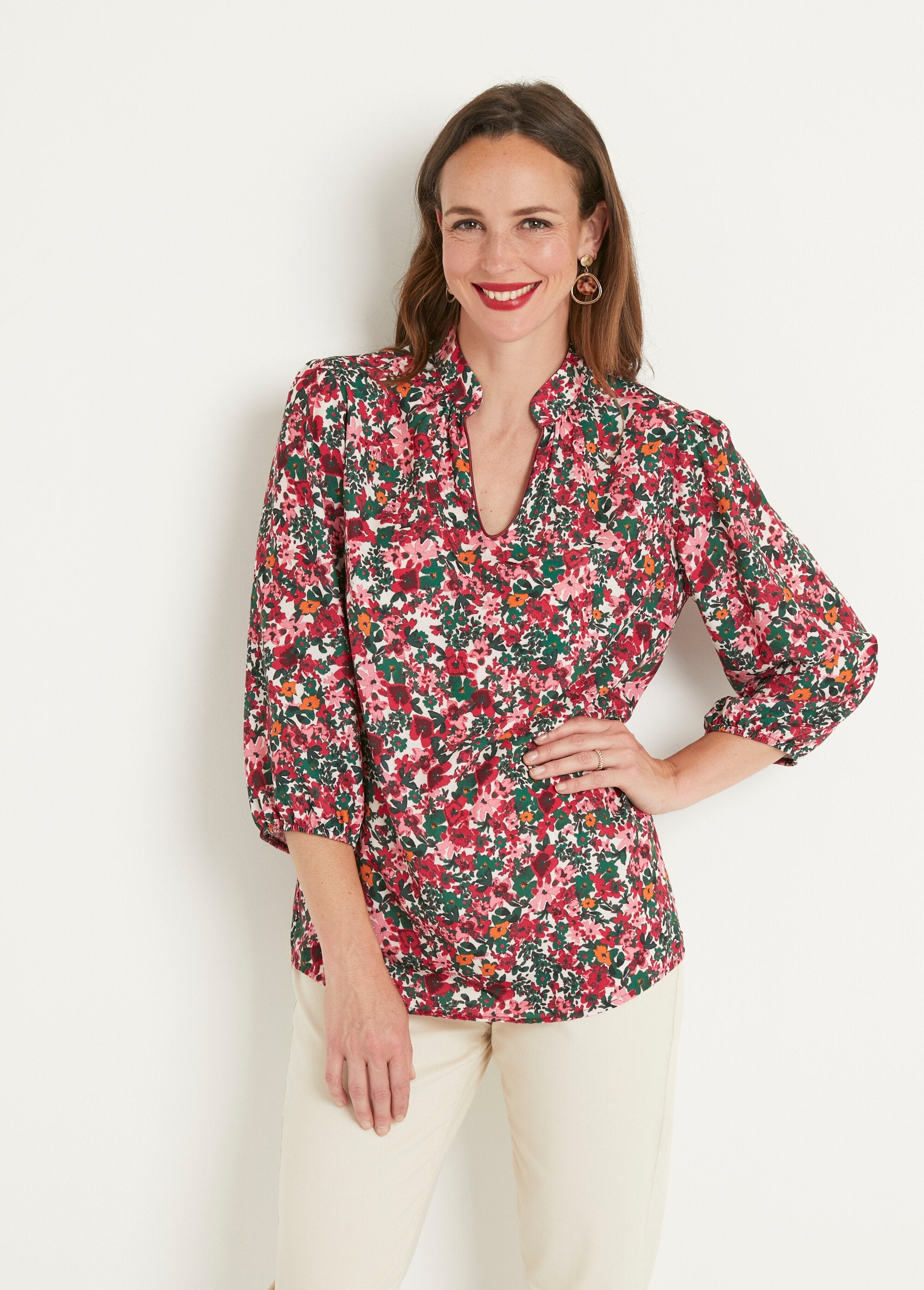 Loose_tunic_in_printed_cotton_voile_with_3/4_sleeves_Multicolor_FA1_slim Loose_tunic_in_printed_cotton_voile_with_3/4_sleeves_Multicolor_FA2_slim