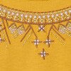This T-shirt features a lovely embroidered detail! Embroidery is placed under the round neckline and on the offset shoulder seams at the front. Bias binding at the neckline. Double stitching at the hem and the bottom of the long sleeves.